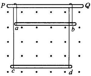 15.如图所示,水平放置的金属杆ab、cd,用两条柔软的导线将它们连接成闭合回路,悬挂在一根光滑、不导电、水平放置的圆棒PQ两侧,整个装置处在一个与回路平面垂直的、方向向外的匀强磁场中。已知ab的质量大于cd的质量。