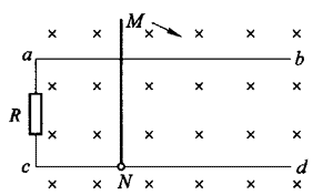 20.如图所示,两条平行金属导轨ab、cd左端接一个电阻,处于磁场方向垂直于导轨平面的匀强磁场中。金属棒MN可以绕N端转动,且棒与导轨始终导通。当棒MN从图示位置刚开始转动时,流过电阻的电流方向是从________指向________。