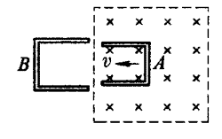 26.两个[形金属导线框A、B放在光滑的水平面上,其中A处于有理想边界的匀强磁场内,如图所示。使A匀速向B运动,刚好能进入B(有接触而无摩擦)。在A、B接触后的短暂时间内,A将如何运动?( )。