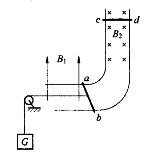 28.如图所示,一个模拟发电机-电动机组。由水平金属导轨和竖直金属导轨连接而成。金属棒ab、cd分别处在竖直向上和垂直纸面向里的匀强磁场中,它们可以沿导轨无阻力地滑动。试分析这个装置可用来模拟发电机和电动机的原理。