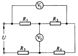 58.图中的R1=2 Ω,R4=5 Ω。电压表V1的示数为2.5 V,V2的示数为4 V,则R2的阻值为________Ω;流过R1与R2的电流之比是________。