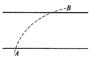 63.图中的实线是一个电场中的两根电场线,虚线为一个负点电荷只受电场力作用时,从A到B运动轨迹的一部分。请在图中画出:
