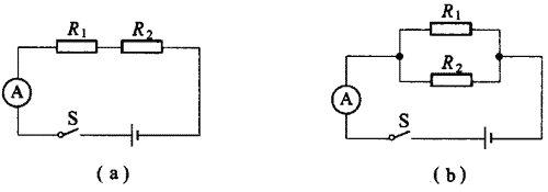 68.将两只不同阻值的电阻R1和R2连接成如图(a)所示的电路,闭合开关S后,电流表的示数为0.5 A。现将电路改接为如图(b)所示,闭合开关S后,电流表的示数( )。