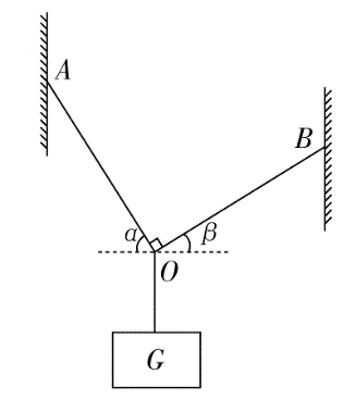 如图所示,一轻绳的两端分别固定在不等高的A、B两点,现用另一轻绳将一物体系于O点,设轻绳AO、BO相互垂直,α>β,且两绳中的拉力分别为FA、FB,物体受到的重力为G,下列表述正确的是( )