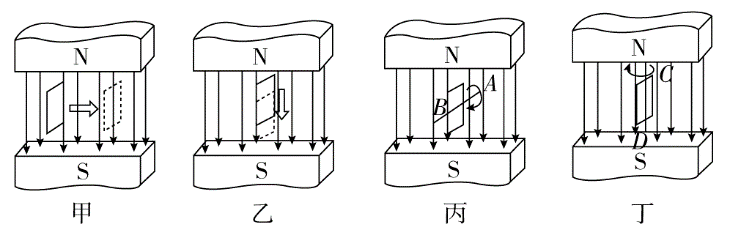 (C)如图丙所示,线框绕位于线框平面内且与磁感线垂直的轴线AB转动