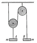 18.一个由动滑轮和定滑轮组成的滑轮组(如图),在它们的下方分别悬挂质量均为m的重物(滑轮的质量不计,一切阻力不计)。开始时两物体处于静止状态,释放后发生运动,当A的位移为h时,问两物体的速度各为多大?