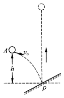 20.如图所示,将一个质量为m的弹性球,以某一速度投向斜面,恰好能竖直向上弹起。若投出点离碰击点p的竖直高度为h,今要使弹起的高度为3h,则抛球速度至少应多大?(碰击损失不计)