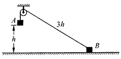 26.如图所示,一个定滑轮离地面适当高度,跨过它的细绳的一端连接一个质量为m的重物A(它挂在轮边,离地面高度为h),绳的另一端系住一个质量为2m的物体B。B物体可以沿光滑水平面运动,此时绳的长度为3h。放手后A下落时牵动B,求A落地时的速度。
