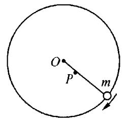10.一个被细绳拉住的小球m,在光滑水平面上做匀速圆周运动,圆心为O。在运动过程中,细绳被固定在光滑平面上的一枚铁钉P挡住,如图所示。这时小球的线速度________,角速度______,加速度________,细绳的拉力_____(填变大、变小、不变)。