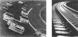28.如图中所示,为什么赛车场和铁轨的弯道处,路基都要设计成倾斜的?