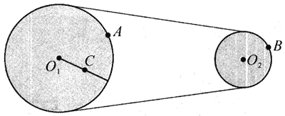 2.图中O1、O2两轮通过皮带传动,两轮半径之比r1∶r2=2∶1,点A在O1轮边缘上,点C在O1轮半径中点,点B在O2轮边缘上,请填写A、B、C三点的线速度之比、角速度之比和加速度之比。