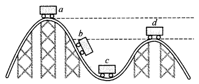 34.图中过山车由a点从静止出发依次通过b、c、d点,请根据该图提出有关的物理问题,看谁提的问题又多又好,看谁能回答提出的问题。