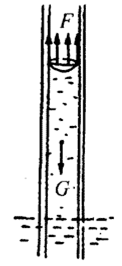 玻璃管壁对血液是浸润的,也就是玻璃分子对血液分子的吸引力大于血液内部分子的吸引力,因此血液与玻璃管壁的附着处产生凹弯月面,如图所示。表面张力使液体有向上收缩的趋势,于是血液就在玻璃管内上升,直到细管内血液的重力G与表面张力的合力F相等时,就处于平衡状态,血液就停止在一定的高度,管子越细,则需要更高的血液液柱才能与表面张力相平衡,因此越细的管子血液上升得越高。
