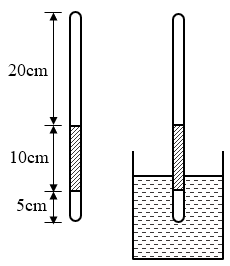 99.有人设计了一种测定某种物质与环境温度关系的测温仪,其结构非常简单(如图所示)。两端封闭、粗细均匀的竖直玻璃管内,有一段长10 cm的水银柱将管内气体分隔成上、下两部分,上部分气柱长20 cm、压强为50×1333 Pa;下部分气柱长5 cm。今将管子下部插入待测温的液体中(上部分仍在原环境中),这时水银柱向上移动了2 cm。问:待测液体温度是环境温度的几倍?