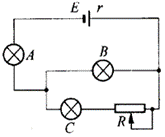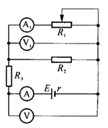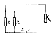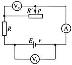 22.在如图的电路中,电源的电动势为E,内阻为r,外电路中R是定值电阻。当滑动变阻器R′的滑动片P向右移动时,三个电表的示数将怎样变化?