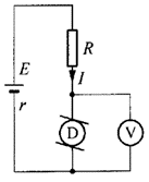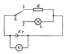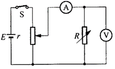 19.在如图所示的电路中,电阻R=3.5 Ω,电源的电动势E=1.5 V,内阻r=0.25 Ω,求电压表的示数。