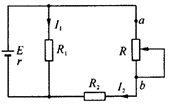 这是一道分析电路中各电学量变化趋势的题目,要把握部分与整体的关系,分清哪些是变量哪此是不变量。题中电动势和除变阻器之外的电阻是不变量,变阻器电阻和电表读数可能要变化。当R1的滑动触头向右移动时,外电阻增大,内阻不变,由闭合电路欧姆定律,总电流I减小,内电压减小,外电压增大。由总电流I减小可知R3上的电压减小,而外电压U增大,所以R1的电压U1增大。R1上的电压U1增大,但R1也增大,R1上的电流是增大还是减小呢?这不能仅仅从R1的局部解决问题,而是要从总电流和分电流的关系上去分析。总电流I减小,R2上的电流增大,所以I1必然是减小的。