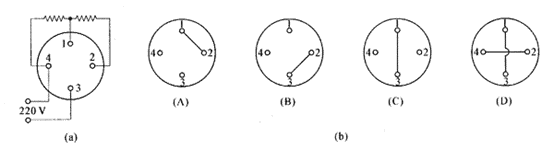 65.有一只电熨斗的电路结构如图(a)所示。改变内部接线方式,可以使电熨斗处于不同工作状态。在图(b)四种不同的连接方式中,能获得最低挡温度的是( )