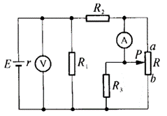 (2)当滑动变阻器滑片P滑至b端时,电压表、电流表的示数和此时电源的输出功率P。