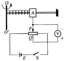 76.角速度计可测量航天器自转的角速度ω,其结构如图所示。当系统绕轴OOʹ转动时,与 弹簧相连的元件A在光滑杆上发生滑动,并输出电压信号,成为航天器制导信号源。已知A的质量为m,弹簧的劲度系数为k,原长为l。电源电动势为E,内阻不计。滑动变阻器总长为L,系统静止时滑动变阻器的滑片P在中间位置,与固定接点Q正对。当系统以角速度ω转动时,求: