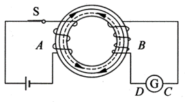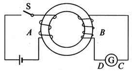 1.如图是法拉第发现电磁感应现象的实验示意图。A、B是套在同一铁芯上的两个线圈,当电键S闭合时,标出与线圈B相连接的灵敏电流计中电流的方向。
