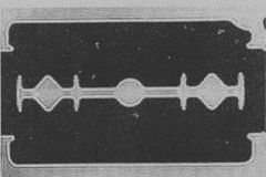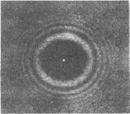 各种不同形状的物体都能使光发生衍射,刮胡须刀片的阴影模糊不清,是光通过刀片边缘发生衍射的结果。“泊松亮斑”(如下图)的形成也是小圆板边缘衍射的结果。当我们用刀片制成0.1 mm的狭缝时,虽然缝宽为光波波长的几百倍,仍然能看到明显的衍射条纹,也是由于光在刀片的边缘发生衍射的结果。