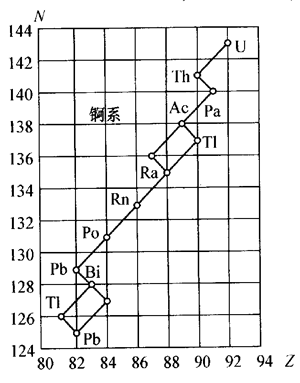 纵坐标N表示中子数,横坐标Z表示质子数;从23592U→20782Pb有7次α衰变,4次β衰变。