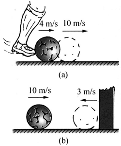 (1)若开始时足球的速度是 4 m/s,方向向右,踢球后,球的速度为 10 m/s,方向仍向右,求足球的初动量、末动量以及踢球过程中动量的变化量。