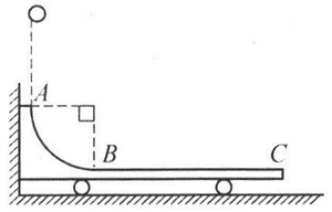 22.如图所示,水平光滑地面上停放着一辆小车,左侧靠在竖直墙壁上,小车的四分之一圆弧轨道 AB 是光滑的,在最低点 B 处与水平轨道 BC 相切,BC 的长度是圆弧半径的 10 倍,整个轨道处于同一竖直平面内。可视为质点的物块从 A 点正上方某处无初速下落,恰好落入小车圆弧轨道滑动,然后沿水平轨道滑行至轨道末端 C 处恰好没有滑出。已知物块到达圆弧轨道最低点 B 处时对轨道的压力是物块重力的 9 倍,小车的质量是物块的 3 倍,不考虑空气和地面对小车的阻力,以及物块落入圆弧轨道时的能量损失,求: