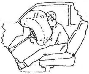 36.如图所示,H 是一种汽车安全气囊,内部贮有化学物质,当汽车高速前进,受到撞击时,化学物质会在瞬间爆发产生大量气体,充满气囊,填补在乘员与车前挡风玻璃、仪表板、方向盘之间,防止乘员受伤。若某次事故中汽车原来的速度是 35 m/s,乘员冲向气囊后经0.2 s 停止运动,人体冲向气囊的质量约为 40 kg,头部和胸部作用在气袋上的面积约为 700 cm2,估算一下,在这种情况下,人的头部和胸部受到的平均压强为多大?相当于多少个大气压?