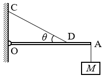 21.如图所示,一块质量M为7 kg的物体悬挂在一根质量m为1 kg、长L为2 m的均匀直杆OA的A端处,杆可绕过O点且垂直于纸面的固定轴无摩擦地转动。一根细纲丝CD拉住这根杆,使它保持在水平位置,OD的长度l为1.5 m,细纲丝与杆的夹角θ为30°,则杆所受到的顺时针力矩有_________个,钢丝对杆的拉力大小为_________N(重力加速度g=10 m/s2)。