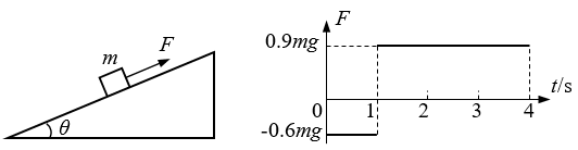 28.如左图所示,一足够长的固定斜面的倾角为θ=37°,物体与斜面间的动摩擦因数为μ=0.25,物体受到平行于斜面的力F作用,由静止开始运动。力F随时间t变化规律如右图所示(以平行于斜面向上为正方向,g=10 m/s2,sin37°=0.6,cos37°=0.8),求: