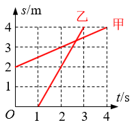 22.甲质点在t=0时刻从O点右方2 m处出发,向右做速度为0.5 m/s的匀速直线运动,乙质点在t=1 s时刻从O点出发,向右做速度为2 m/s的匀速直线运动,规定向右为正方向,试在图中作出两质点运动的s-t图。