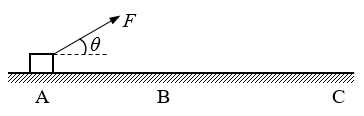 26.如图所示,质量为m=5 kg的物体放在光滑水平面上,物体受到与水平面成θ=37°斜向上的拉力F=50 N作用,由A点处静止开始运动,到B点时撤去拉力F,共经时间t=10 s到达C点,已知AC间距离为L=144 m,求:(sin37°=0.6,cos37°=0.8)