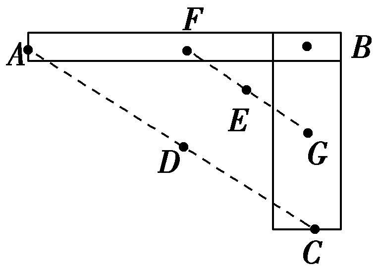 由于质量分布均匀,F为AB边重心的位置,G为BC边重心的位置.则该曲尺重心为F与G连线的中点,即E点。