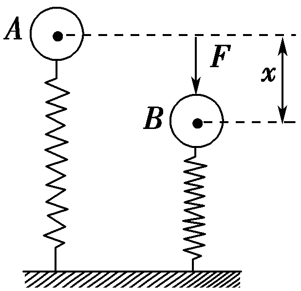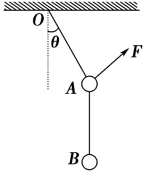 113.如图所示,质量均为m的小球A、B用两根不可伸长的轻绳连接后悬挂于O点,在外力F的作用下,小球A、B处于静止状态。若要使两小球处于静止状态且悬线OA与竖直方向的夹角θ保持30°不变,则外力F的大小( )