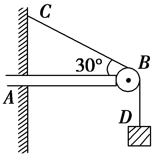 若力F小于上述值,则AC绳弯曲,所以F≥\(\frac{{20\sqrt 3 }}{3}\) N
