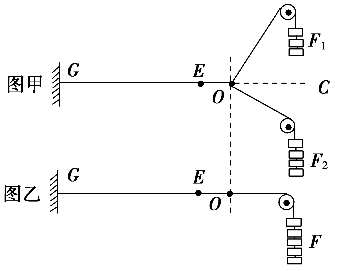 (2)若两个弹簧测力计的读数均为4 N,且两弹簧测力计拉力的方向相互垂直,则其合力为4\(\sqrt 2 \) N>5 N,故不能用一个量程为5 N的弹簧测力计测量出它们的合力。
