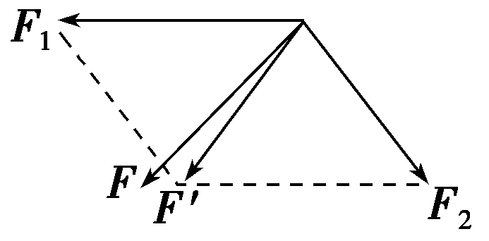 109.在“探究求合力的方法”的实验中,根据实验数据画出力的图示,如图所示,图上标出F1、F2、F、F′四个力,其中________(填上述字母)不是由弹簧测力计直接测得的;若F与F′的________基本相等,________基本相同,说明力的平行四边形定则得到了验证。