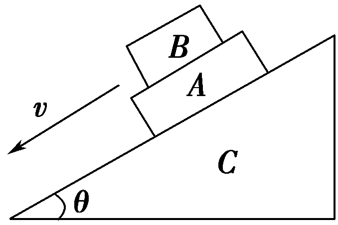 111.如图所示,物体B叠放在物体A上,A、B的质量均为m,且上、下表面均与斜面平行,它们以共同速度沿倾角为θ的固定斜面C匀速下滑,则( )