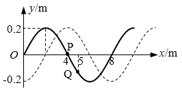 (D)经0.4 s,P点沿x轴经过的路程为2 m