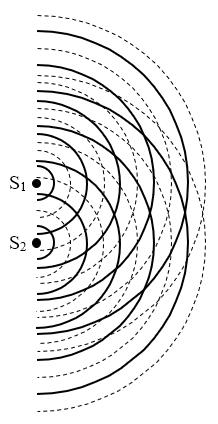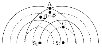 21.如图所示,S1、S2是两个频率相同的波源,它们发出的两列简谐横波在空间相遇,图中虚线和实线分别表示某时刻这两列波的波谷和波峰,则下列正确的是( )。