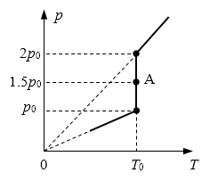 15.某同学利用DIS实验系统研究一定质量的理想气体的状态变化,在实验后计算机屏幕显示了如下的p-T图象(实线部分),已知在A状态气体体积为V0。试求实验过程中,当气体温度保持T0的情况下,气体体积在什么范围内变化?