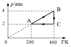 9.如图表示一定质量的理想气体的状态由A经B、C回到A的p-T图象,下列说法中正确的是( )