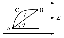 17.电荷在电场中移动时,电场力做功的特点是_______________________________。如图所示,在场强为E的匀强电场中有相距为l的A、B两点,连线AB与电场线的夹角为θ,将一电荷量为q的正电荷沿曲线ACB移动该电荷,电场力做的功W=___________。