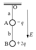 (2)对A、B整体进行受力分析(注意:A、B球之间的库仑引力、b绳的拉力互相抵消,不用分析,此题用整体法简单),可得: