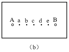 (2)该实验中,在两个电极的连线上选取间距相等的a、b、c、d、e五个点作基准点,如图(b)所示,实验中若发现a点电势低于b点电势,说明电极A与电源的______(选填“正”或“负”)极相连;