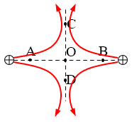 如图所示画出电场线,根据沿电场线方向电势降低和对称性可以判断出结论。