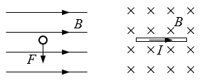 8.图中,已知磁场(B)、电流(I)和磁场对电流作用力(F)三者中的两个量的方向,请画出第三个物理量的方向。