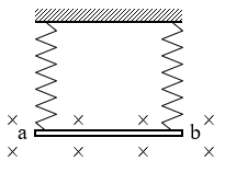 24.如图所示,用两根相同的轻质弹簧沿竖直方向悬挂一根质量为m、长为L的金属棒ab,ab处于方向垂直纸面向里的匀强磁场中。若金属棒通以电流强度为I的电流,平衡后,弹簧对金属棒的作用力恰好为零,则磁场的磁感应强度为____,电流方向为______。